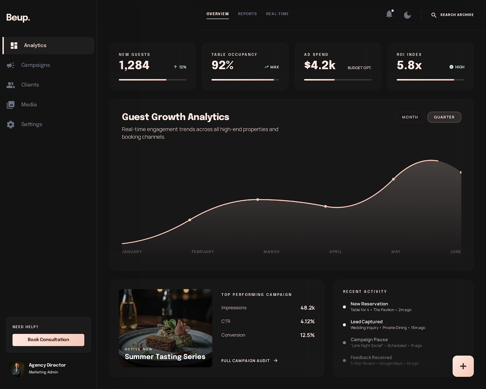 Gezielte Werbekampagnen, die genau dann ausgespielt werden, wenn die Nachfrage schwankt. Wir füllen Ihre Tische auf Knopfdruck.